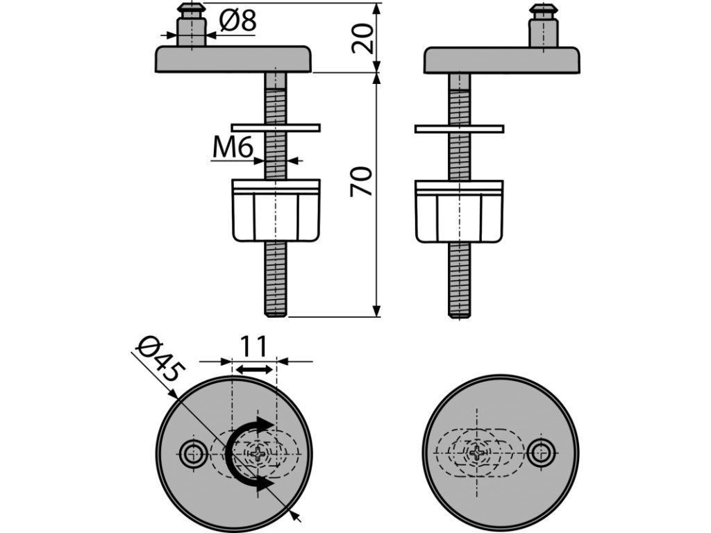 Závesy ALCA so spodnou montážou, uzáver z nehrdzavejúcej ocele P106